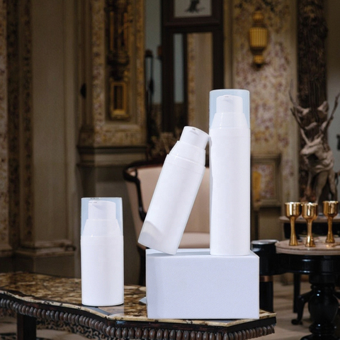Questo set per la cura della pelle presenta una bottiglia bianca minimalista con un tappo in oro rosa, che trasuda un'atmosfera di fascia alta ed elegante.